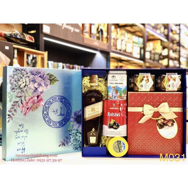 M031 Hộp quà tết cao cấp, rượu Johnnie Walker 18
