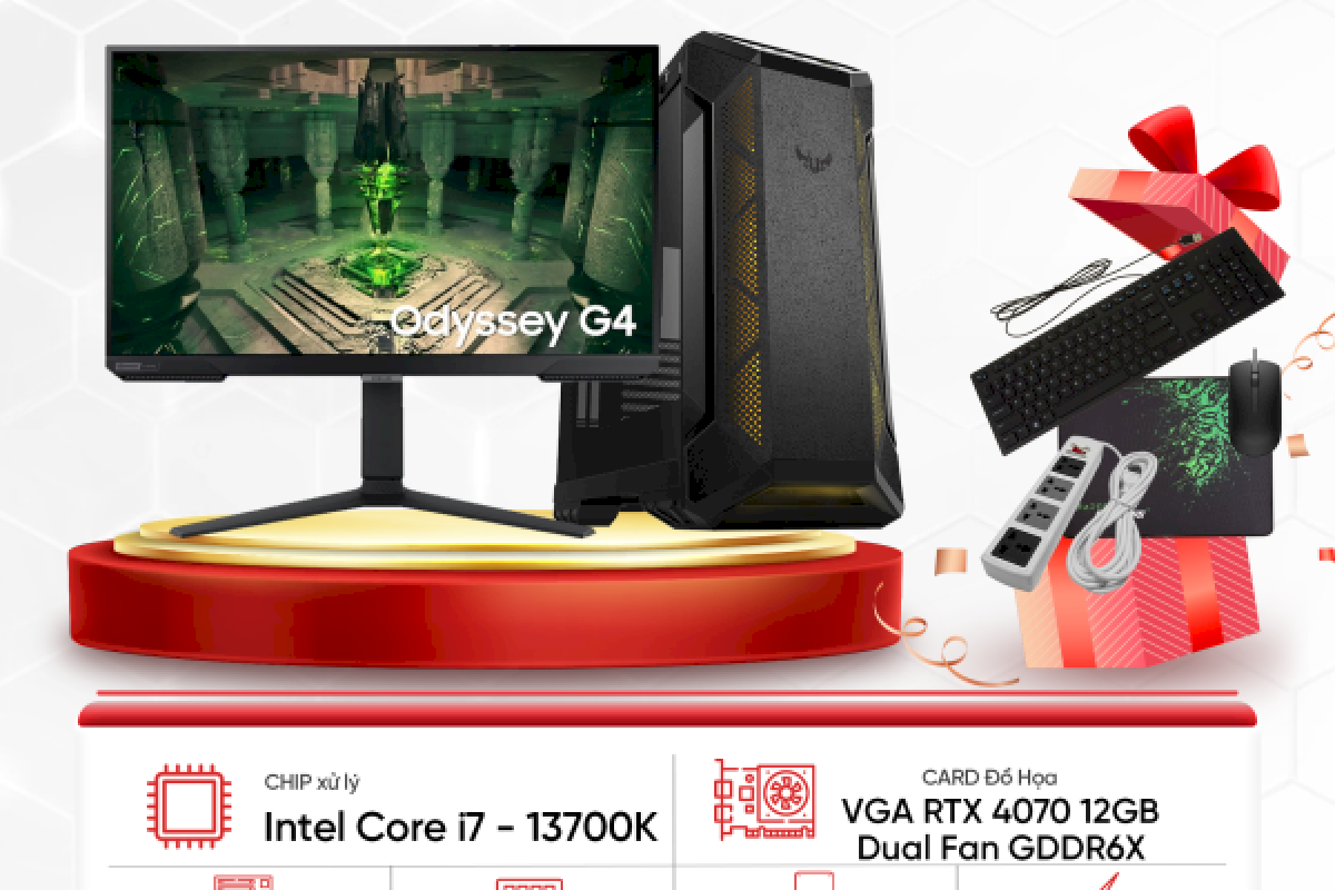 Bộ Máy Tính Gaming Thế Hệ 13 i7-13K sở hữu: i7 – 13700K/RAM 32G/SSD 500GB/VGA RTX 4070 12GB Dual/LCD Samsung